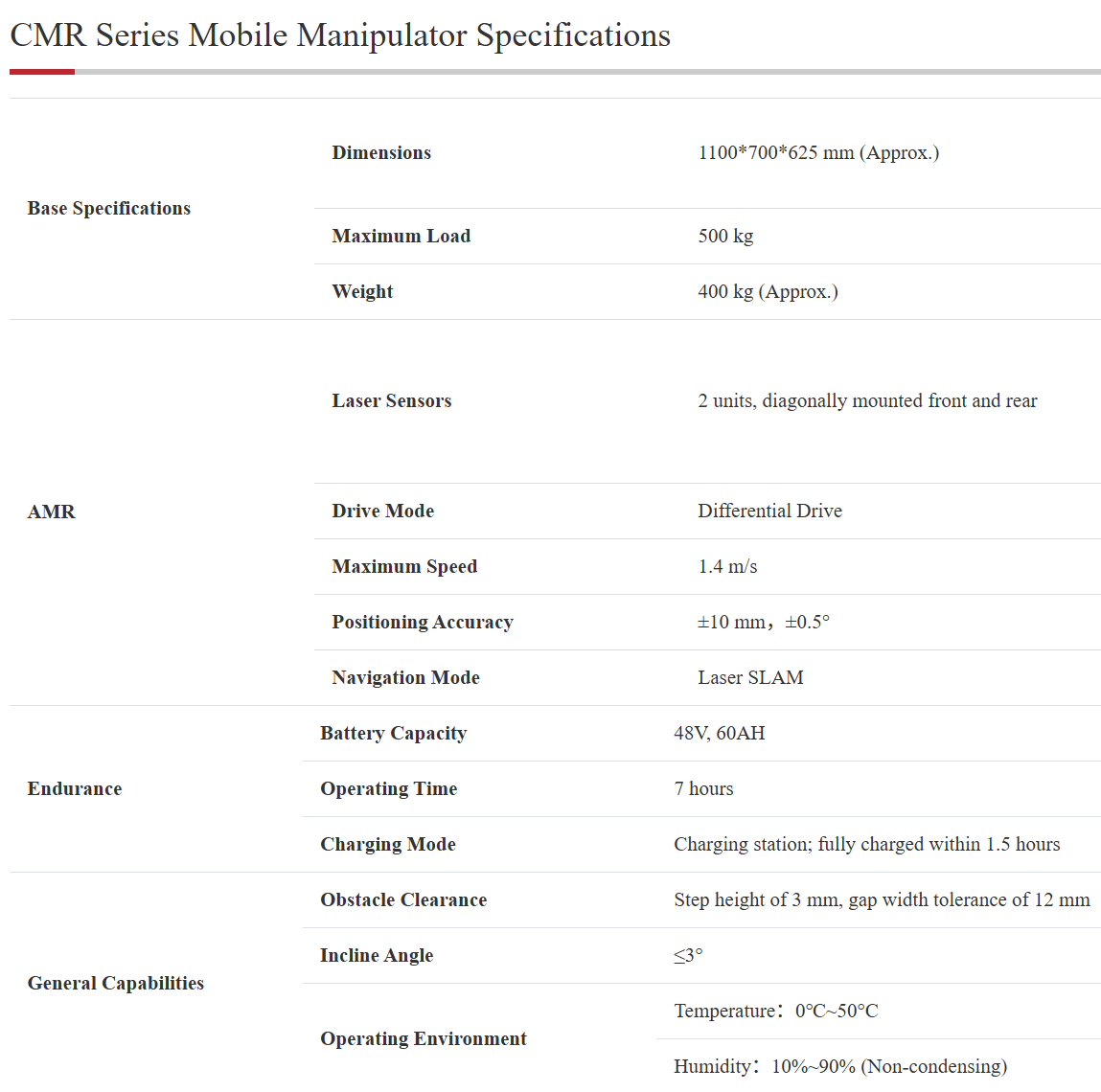 O próprio robô colaborativo móvel é um operador que pode se mover de forma autônoma, em tempo hábil, conclua as tarefas de várias estações diferentes na linha de produção.usando Mecanum modo de tração das rodas, perceber 360 ° movimento em qualquer direção e pode trabalhar de forma flexível em um pequeno espaço de trabalho, de forma eficaz melhorar a utilização do site e eficiência de produção.através da combinação de acessórios sofisticados e conhecimento visual equipamentos diferentes, que podem realizar agarramento, montagem, classificação, carga e descarga, movimentação, manuseio, visão detecção e outras funções são mais precisas, estáveis e eficientes.